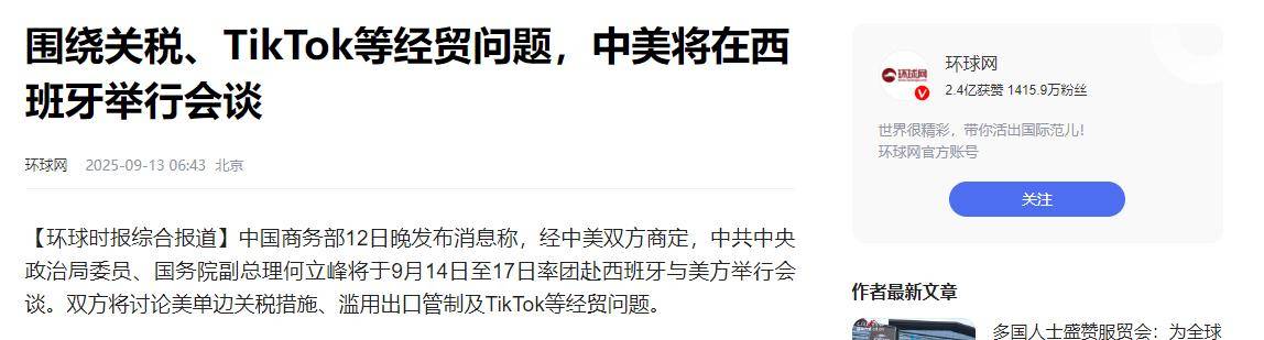 针对TikTok问题,中方要求美方遵守国际经贸规则,为中国企业提供开放、公平、非歧视的营商环境,在关税与农业议题上,则呼吁美方拿出务实行动,回应中方企业的合理诉求。