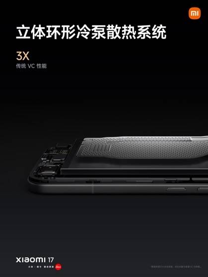 搭配上3D立体环形冷泵散热技术,性能是传统VC性能的3倍,相比iPhone 17 Pro系列新增的VC均热板可谓是代际差距。