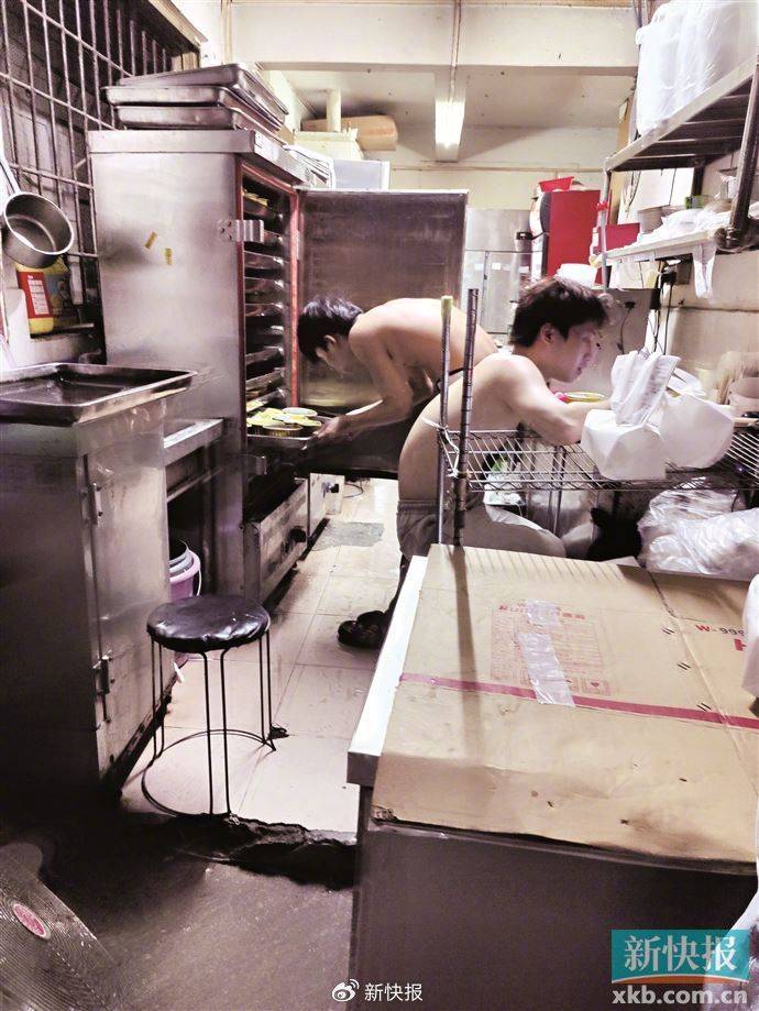 在某外卖平台上月销量8000+的“*金汤·炖足四小时(天河店)”,该店位于天河区石牌朝阳北大街一条昏暗狭小的巷子里,空气中混杂着下水道的臭味和外卖油烟味,十分难闻。新快报记者观察到,由于店面空间局促,加之天气炎热,两名男子光着膀子在蒸柜前处理炖汤。而两人均未佩戴口罩、头套、手套,其中一名店员嘴里还叼着牙签,将已炖好的汤放到另一侧的外卖架上。